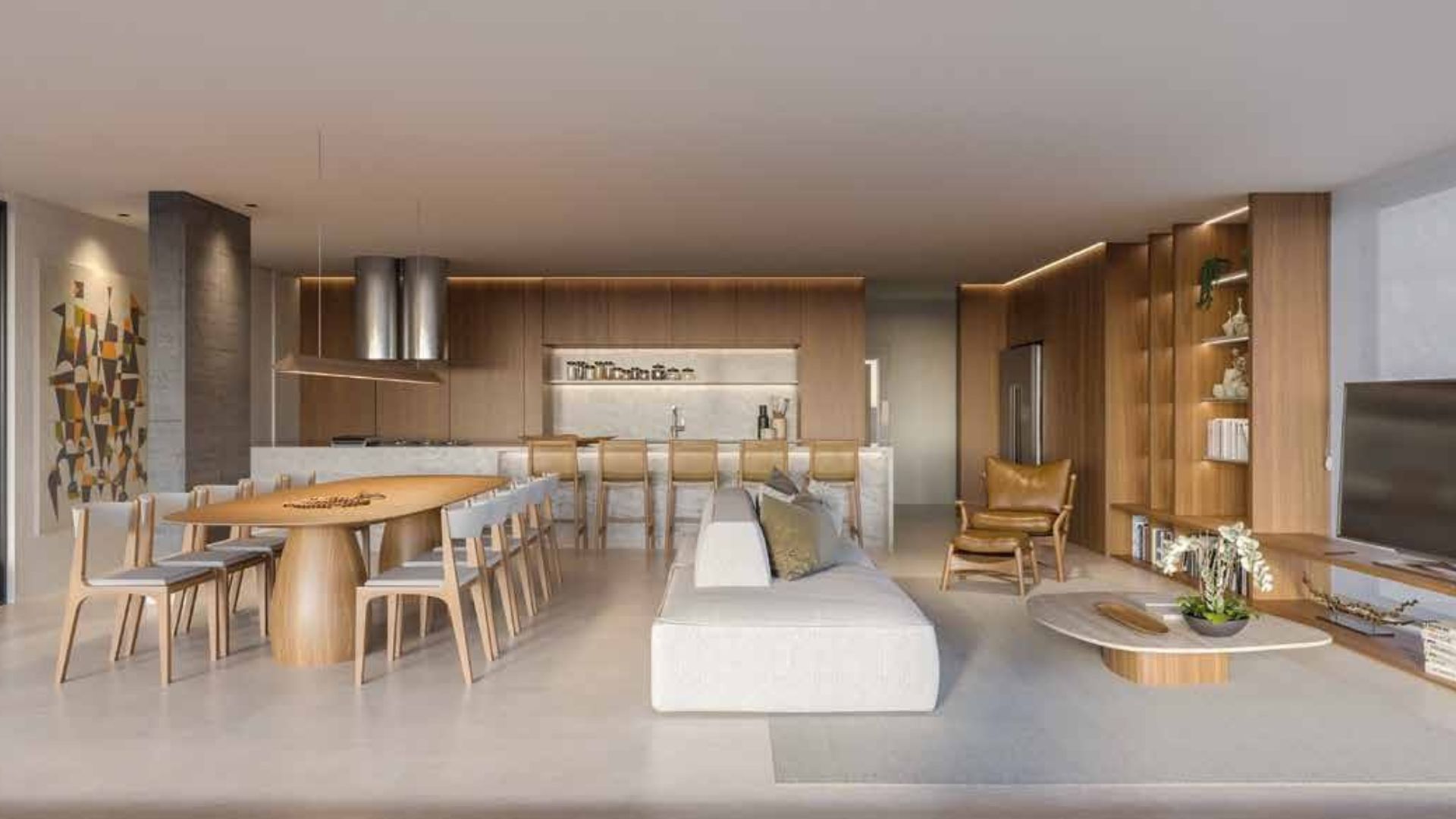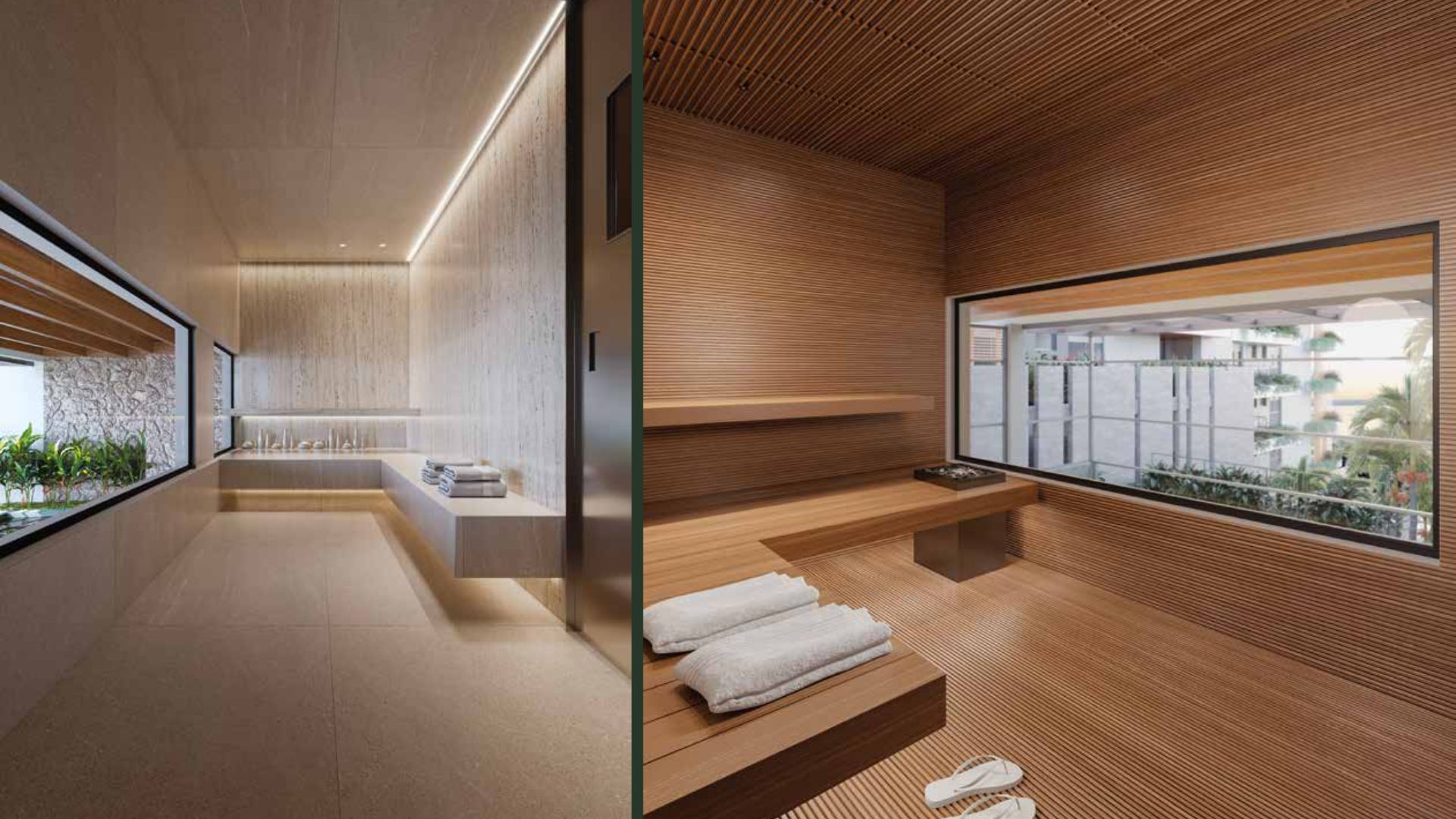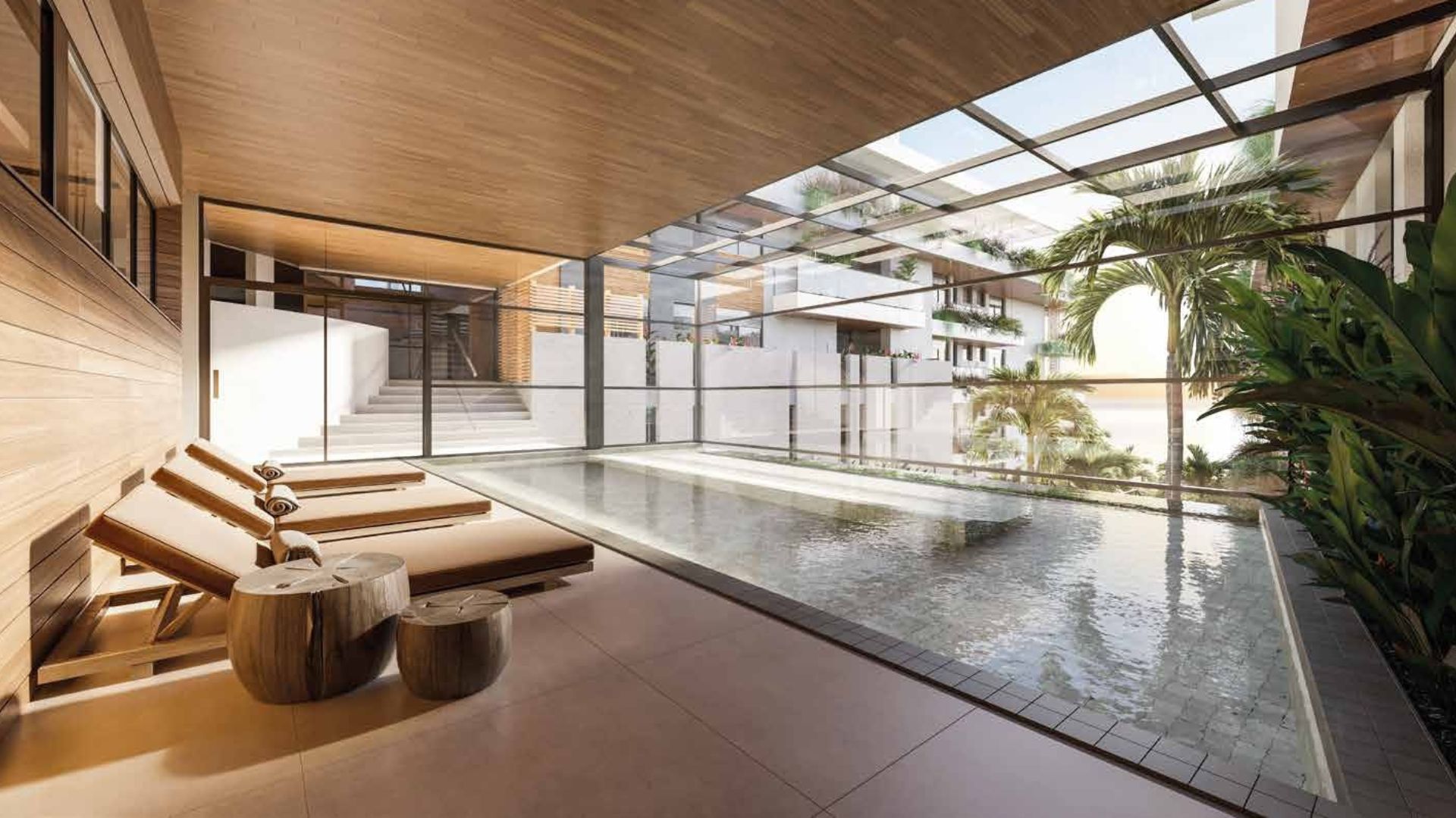 Os ambientes de circulação interna foram projetados para manter o mesmo padrão de elegância das áreas principais, com design de interiores contínuo e iluminação acolhedora. Caminhar até o espaço zen, a piscina térmica ou as áreas de convivência é parte da experiência de morar no empreendimento, reforçando a sensação de refúgio urbano à beira-mar.