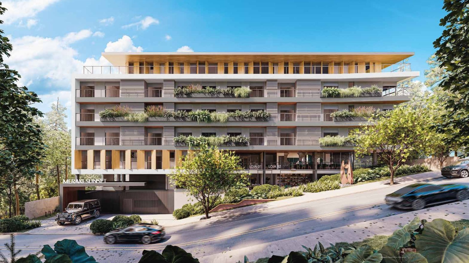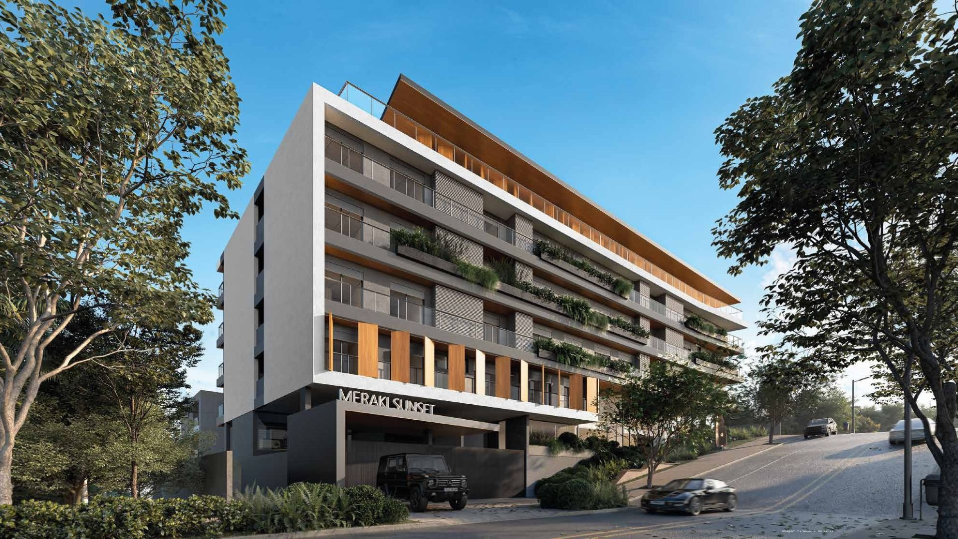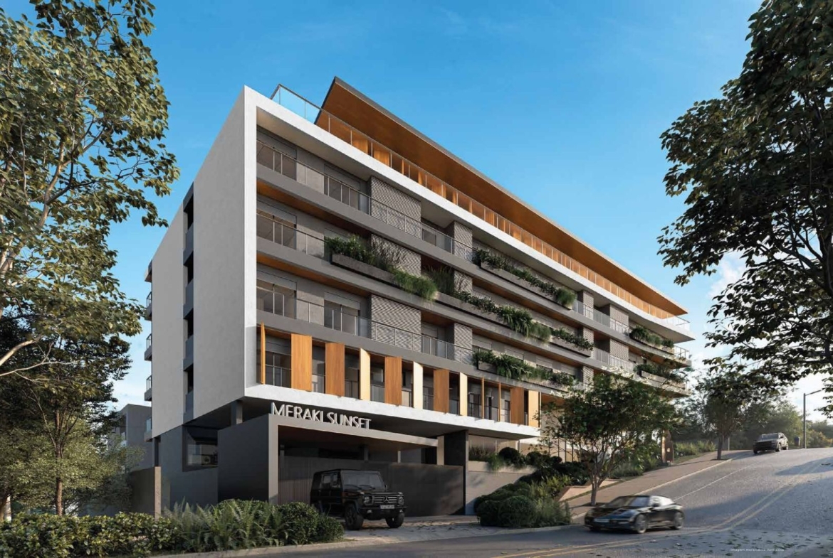 “Meraki”, de origem grega, expressa o cuidado, o zelo e a dedicação de quem faz algo com a alma – conceito que orienta todo o projeto do Meraki Sunset. A implantação prioriza a criação de uma praça central que funciona como o coração do empreendimento, conectando as torres por meio de jardins em diferentes níveis até a praia.